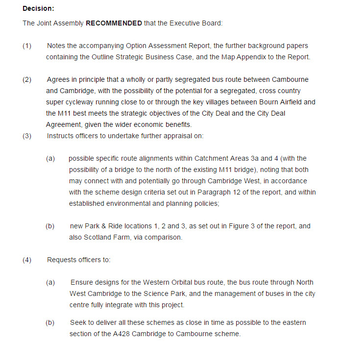 One of the projects that the Greater Cambridgeshire City Deal Board is pushing very hard is the provision of better transport links on the A428 corridor. This ofcourse is because the City and South Cambs want to show that their plans to put 3500 houses on Bourn Airfield and 2300 on West Cambourne is viable and sustainable.